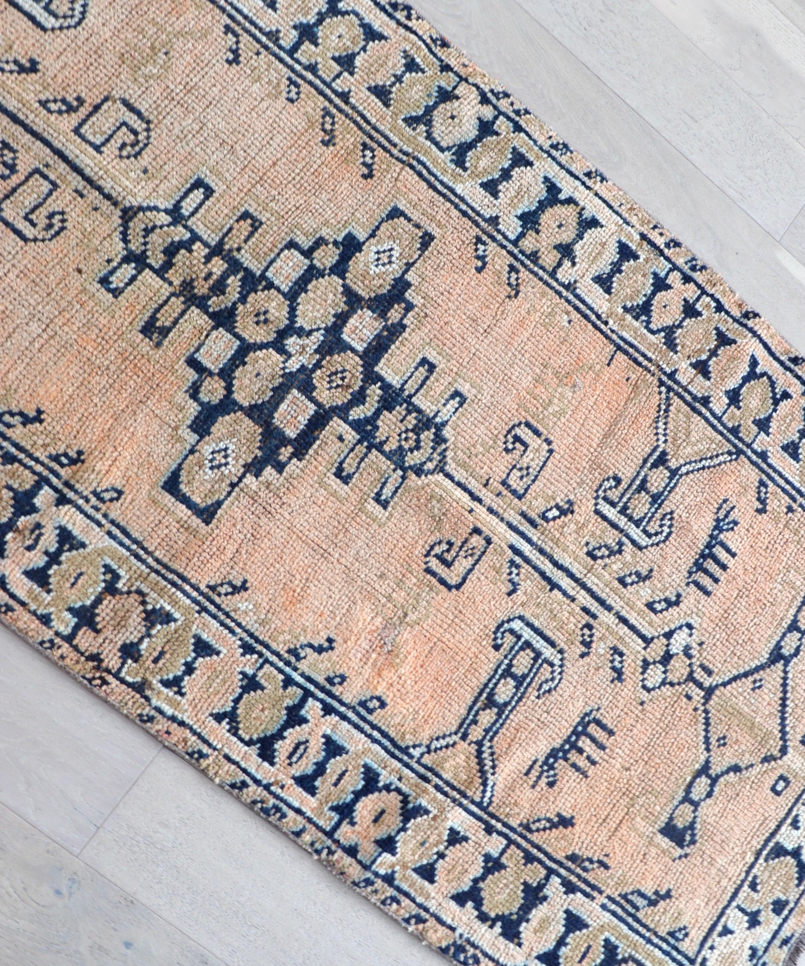 - Due to the handmade and preloved nature of these rugs, there will be imperfections and flaws that are not considered defects. We photograph our rugs indoors with solely natural light to try and show the colors as accurately as possible. All rugs are professionally cleaned.