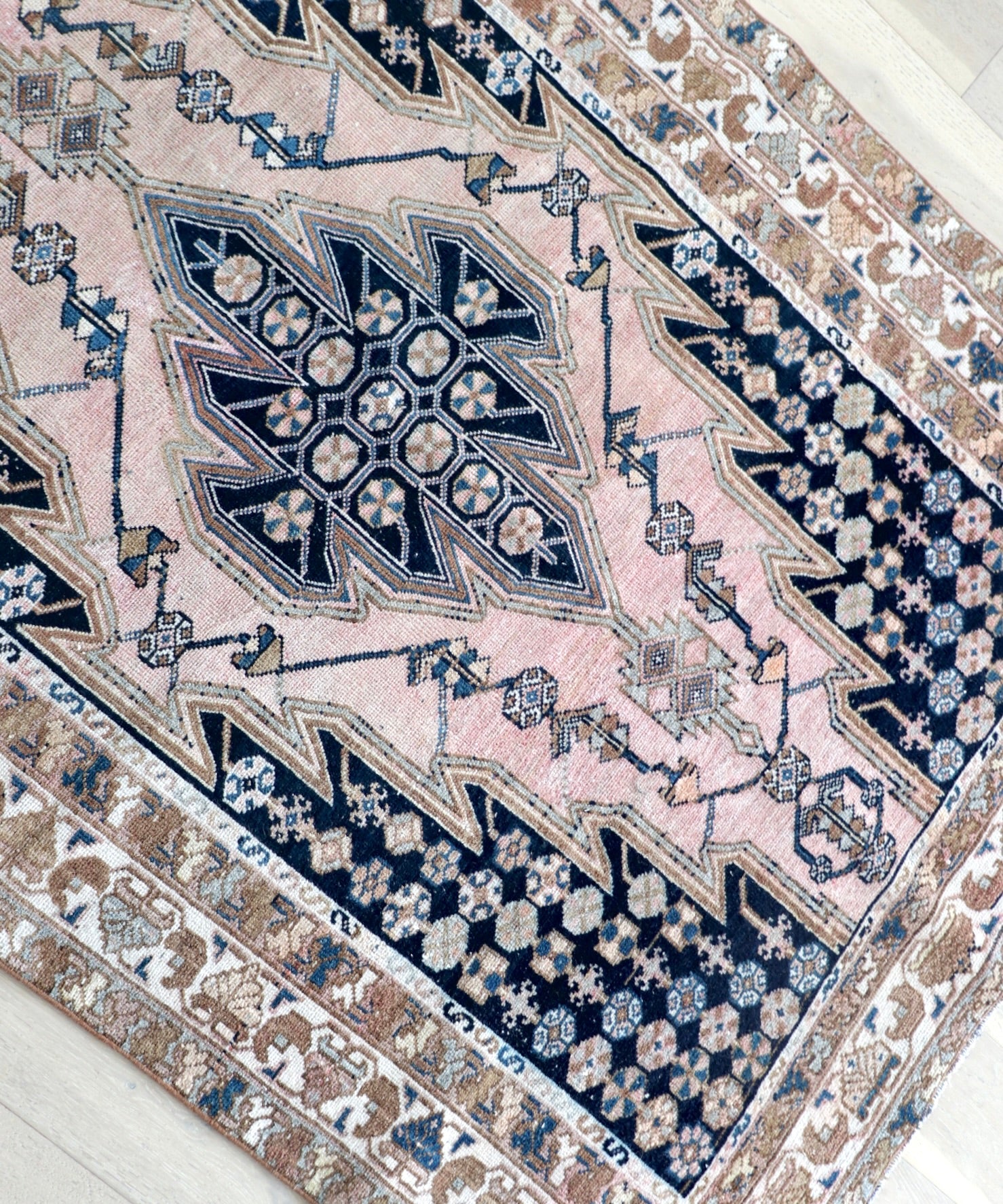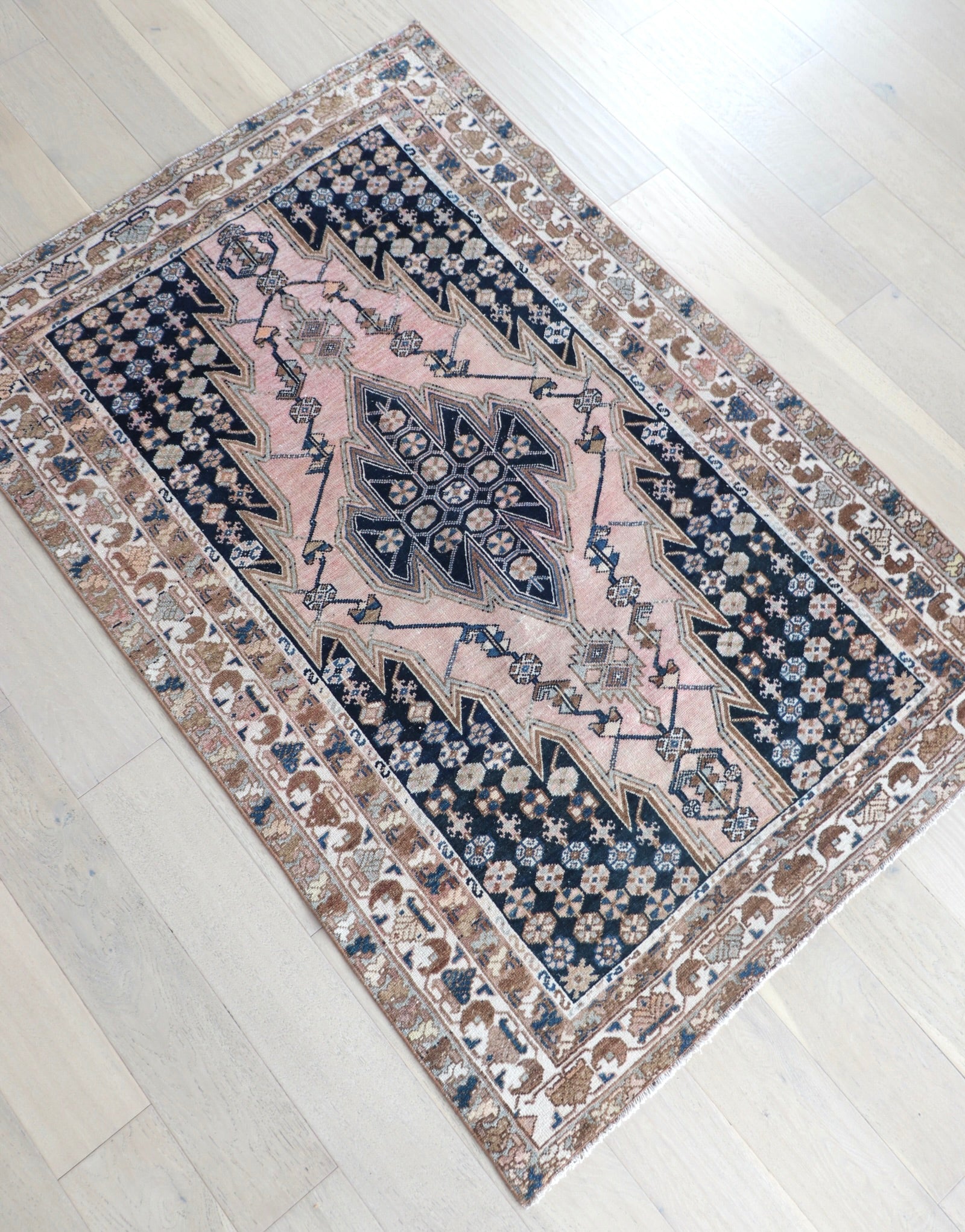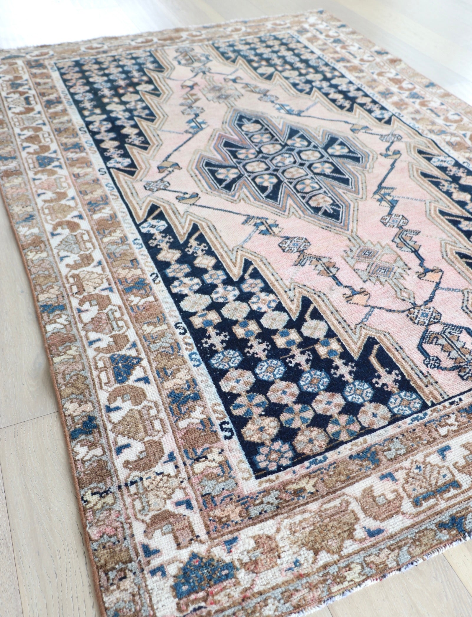 - Due to the handmade and preloved nature of these rugs, there will be imperfections and flaws that are not considered defects. We photograph our rugs indoors with solely natural light to try and show the colors as accurately as possible. All rugs are professionally cleaned.