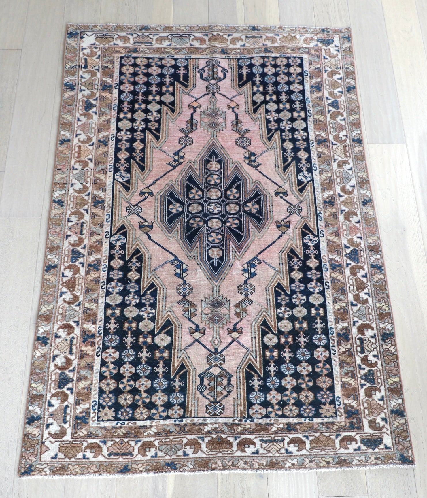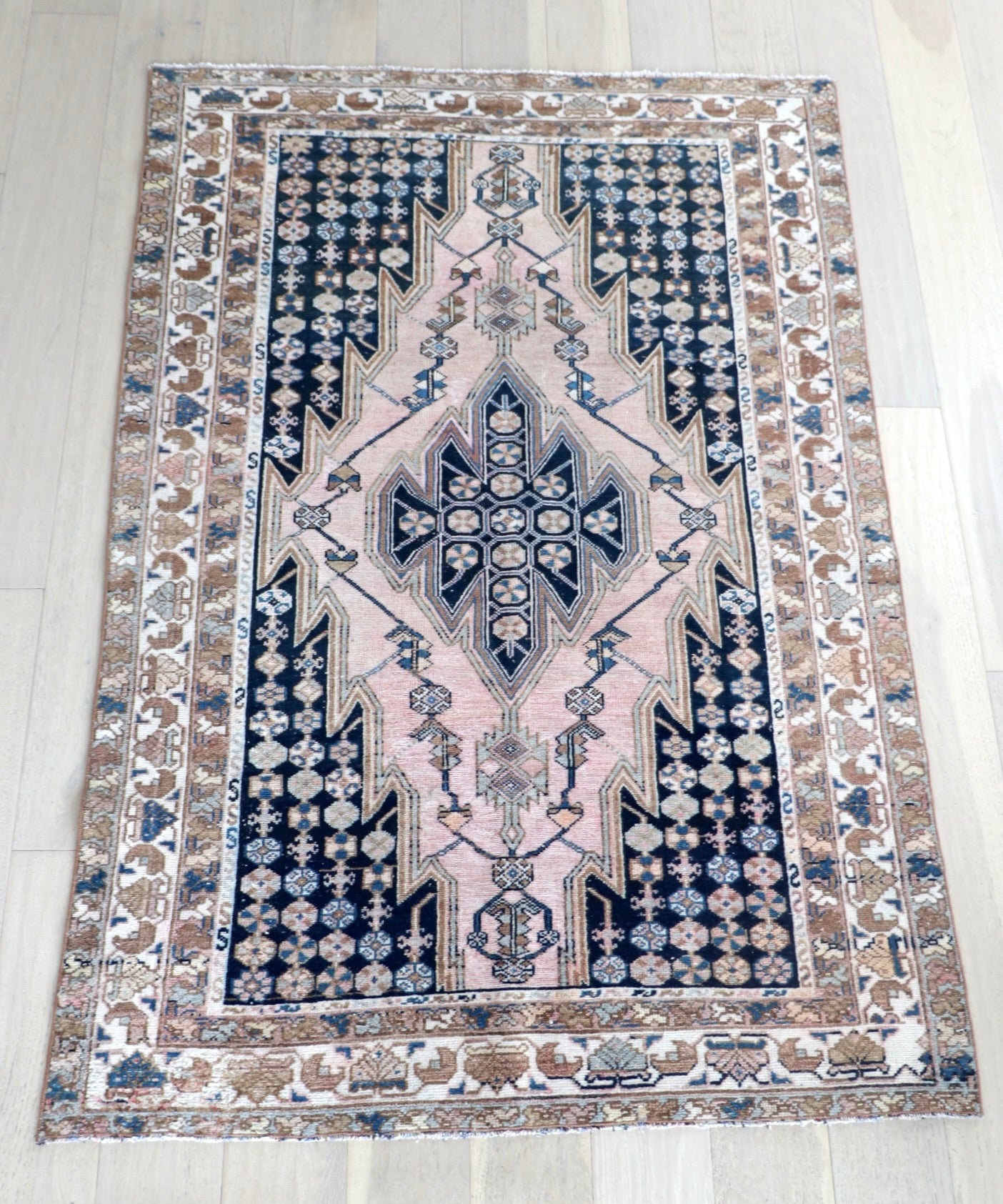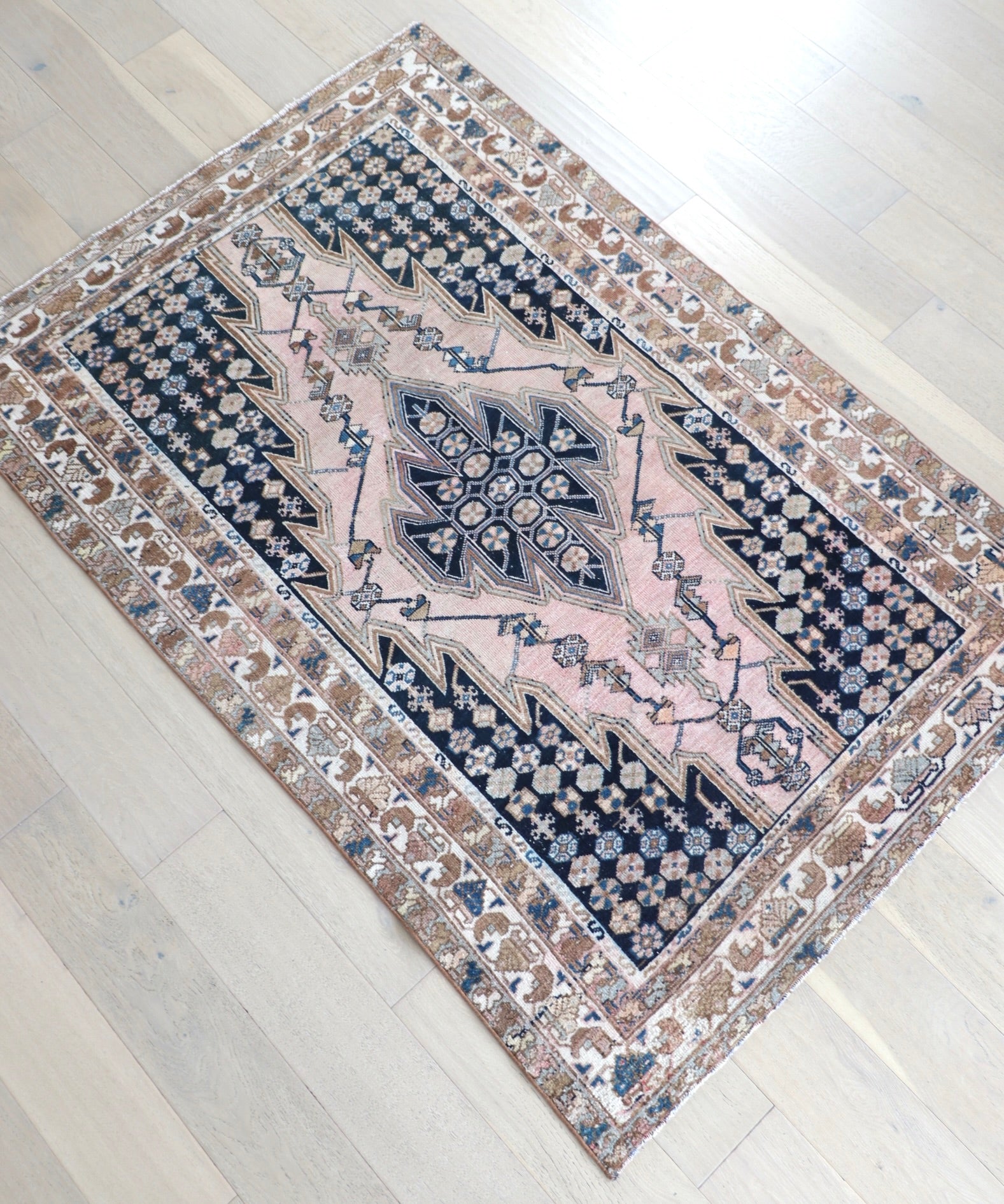 - Due to the handmade and preloved nature of these rugs, there will be imperfections and flaws that are not considered defects. We photograph our rugs indoors with solely natural light to try and show the colors as accurately as possible. All rugs are professionally cleaned.