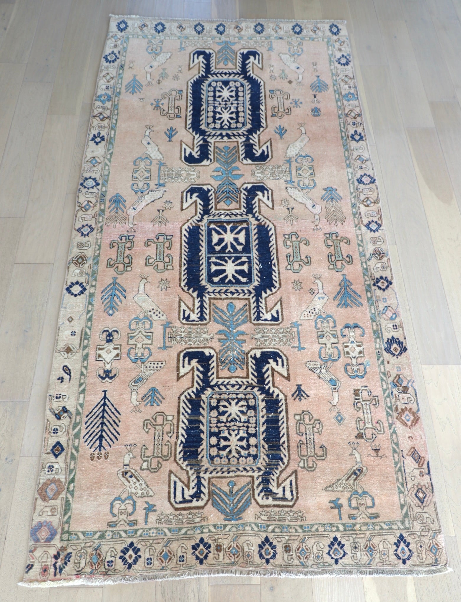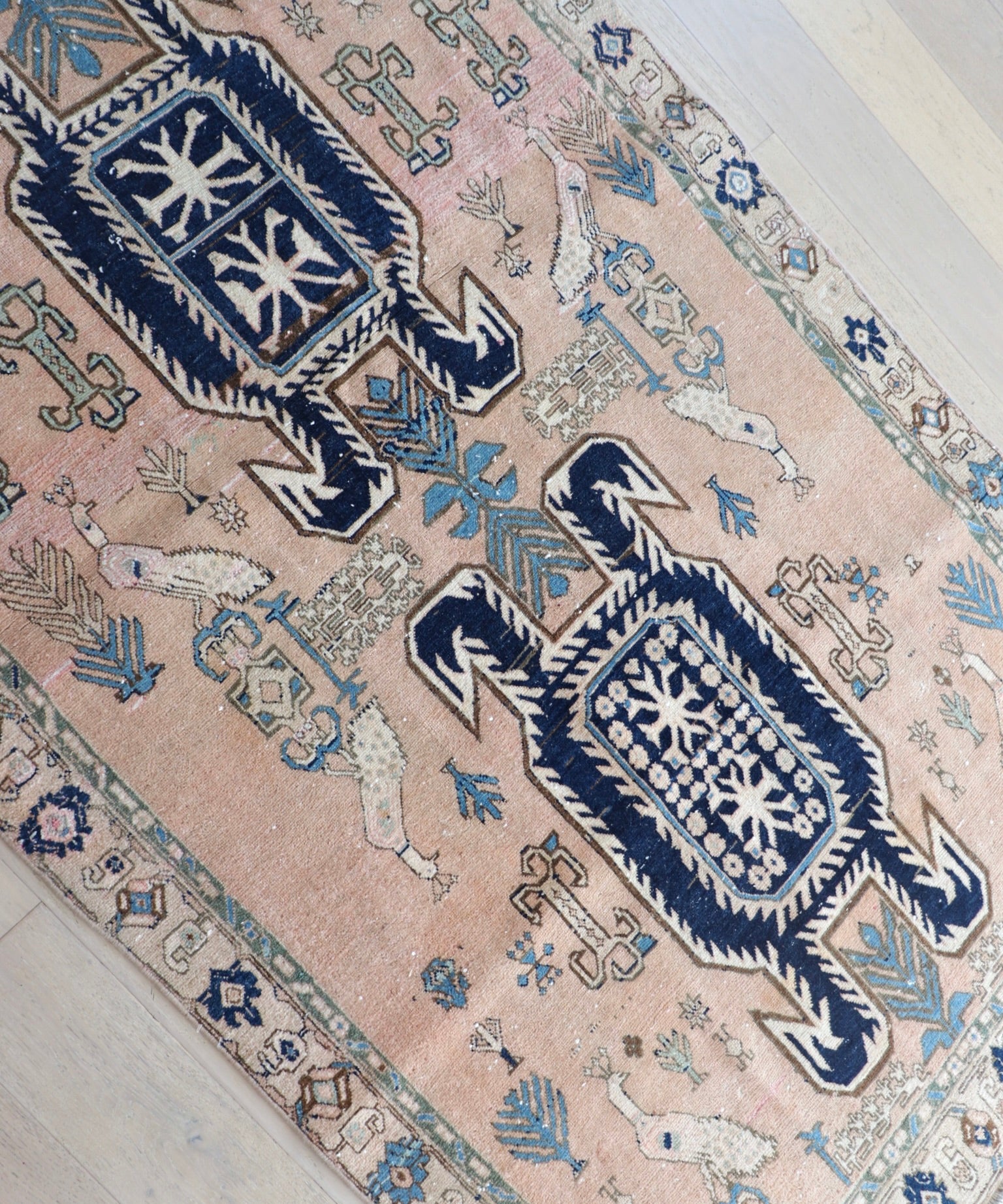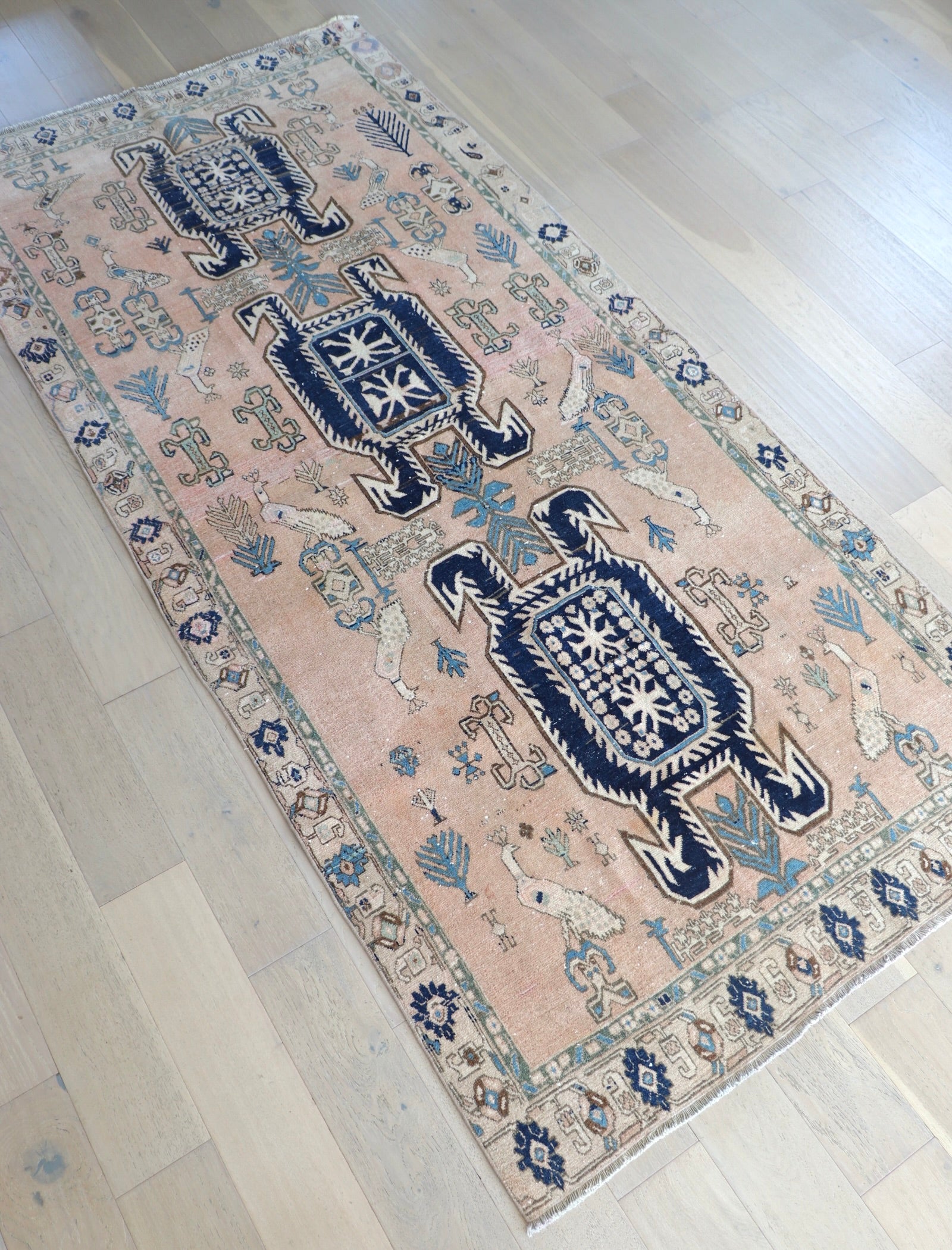 - Due to the handmade and preloved nature of these rugs, there will be imperfections and flaws that are not considered defects. We photograph our rugs indoors with solely natural light to try and show the colors as accurately as possible. All rugs are professionally cleaned.