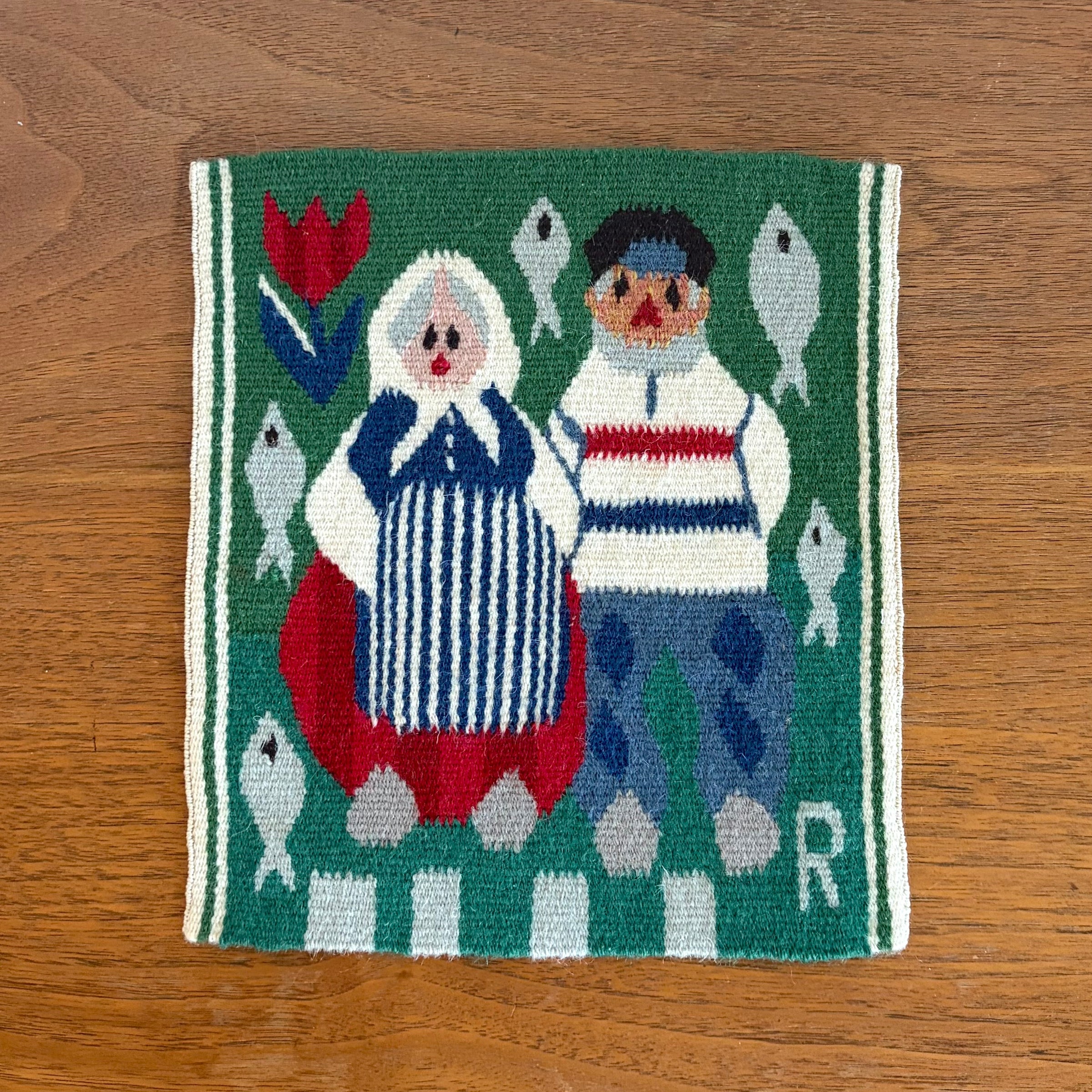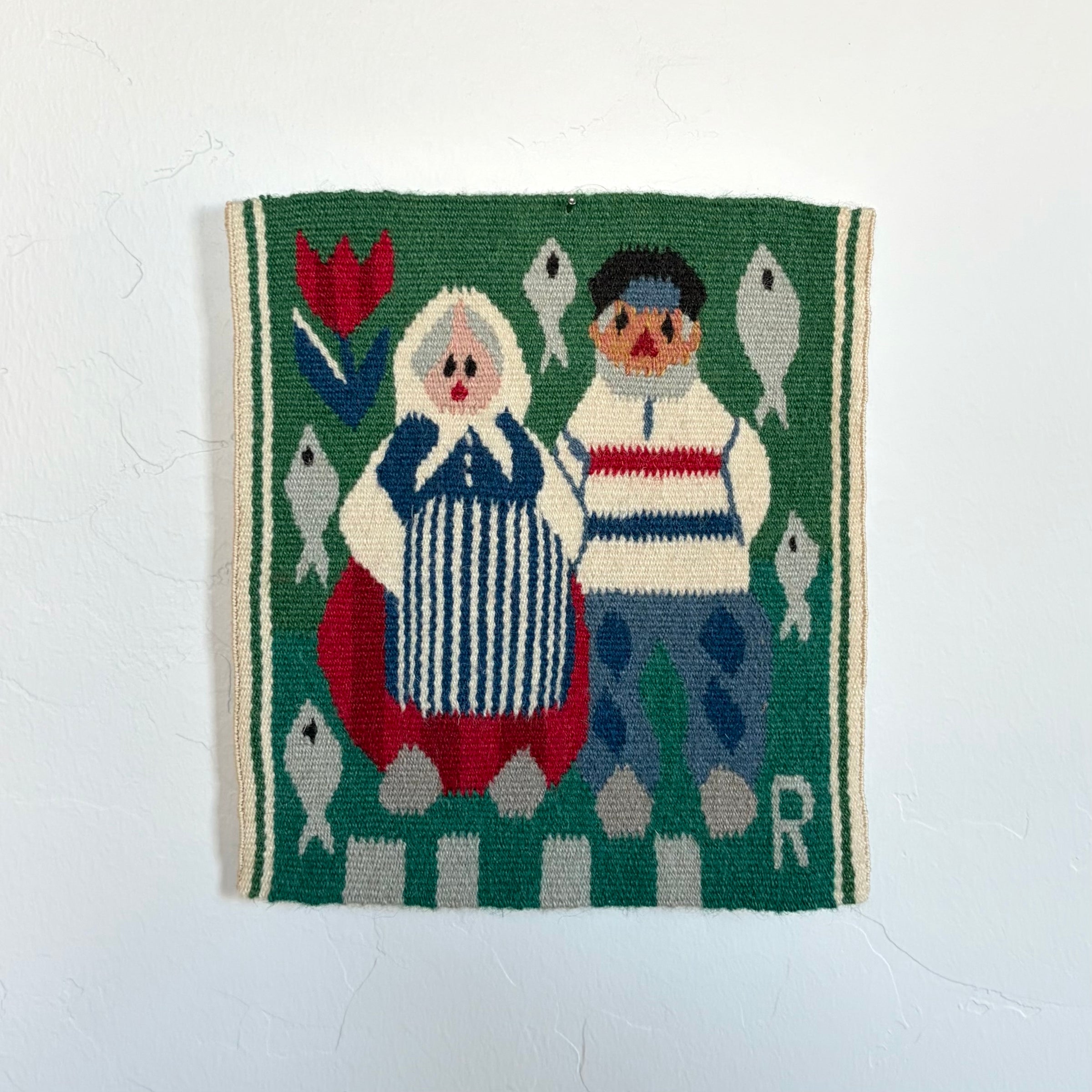 • Flemish handmade weaving of a fisherman couple. Hang on wall as is or framed