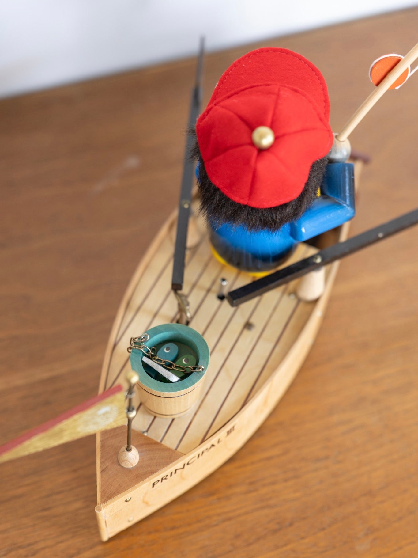 - Boat including rudder and flag measures 14.5” long. To the top of the fish pole measures 13.75” tall. To the top of the fisherman measures 8” tall.