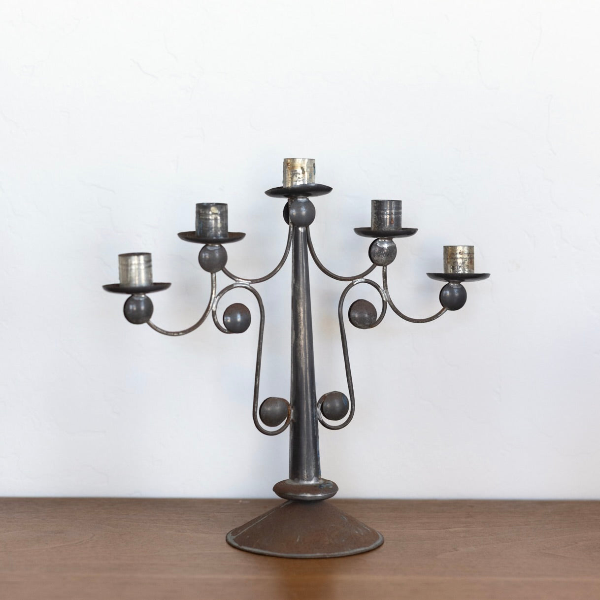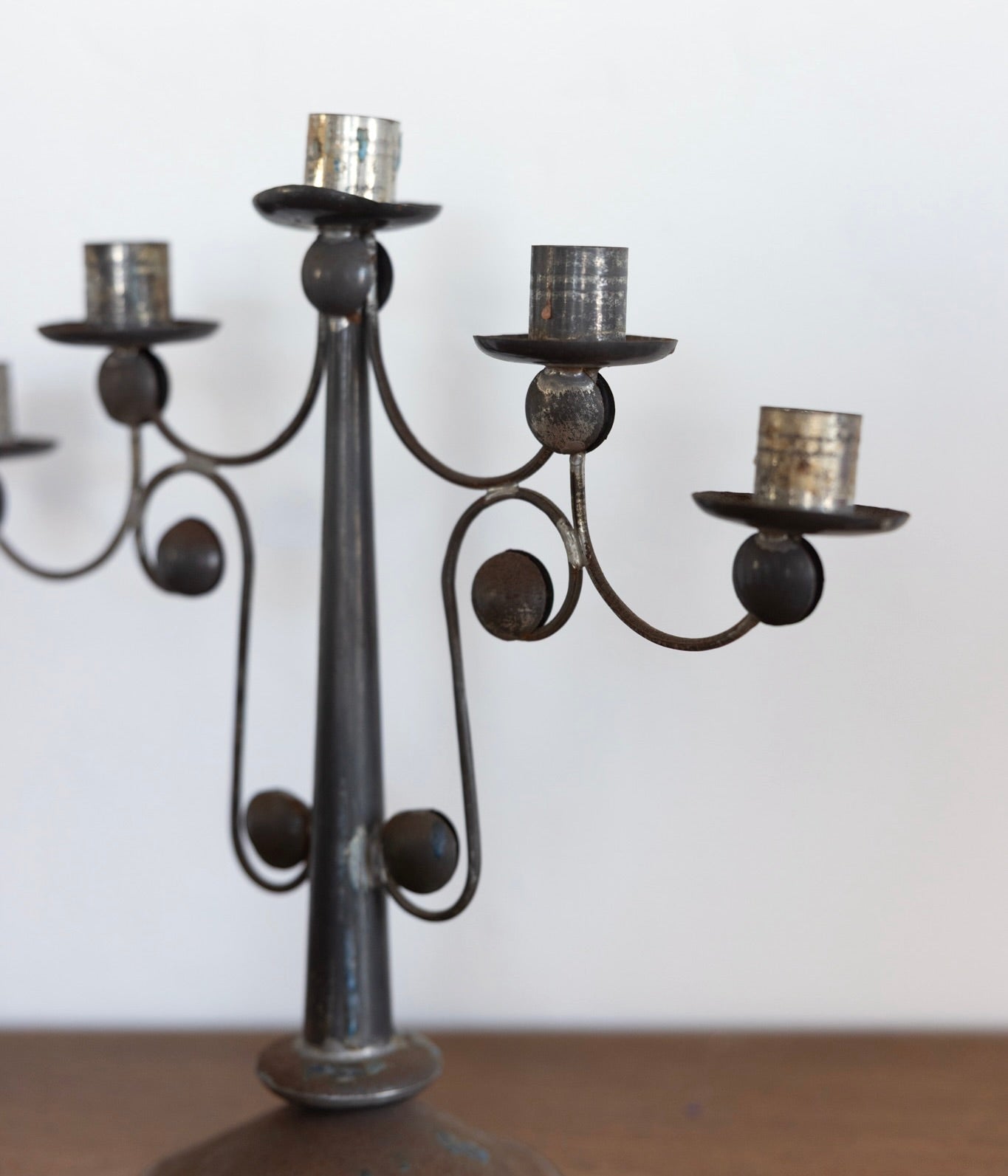- Mexican hand forged metal candelabra. Beautiful natural patina