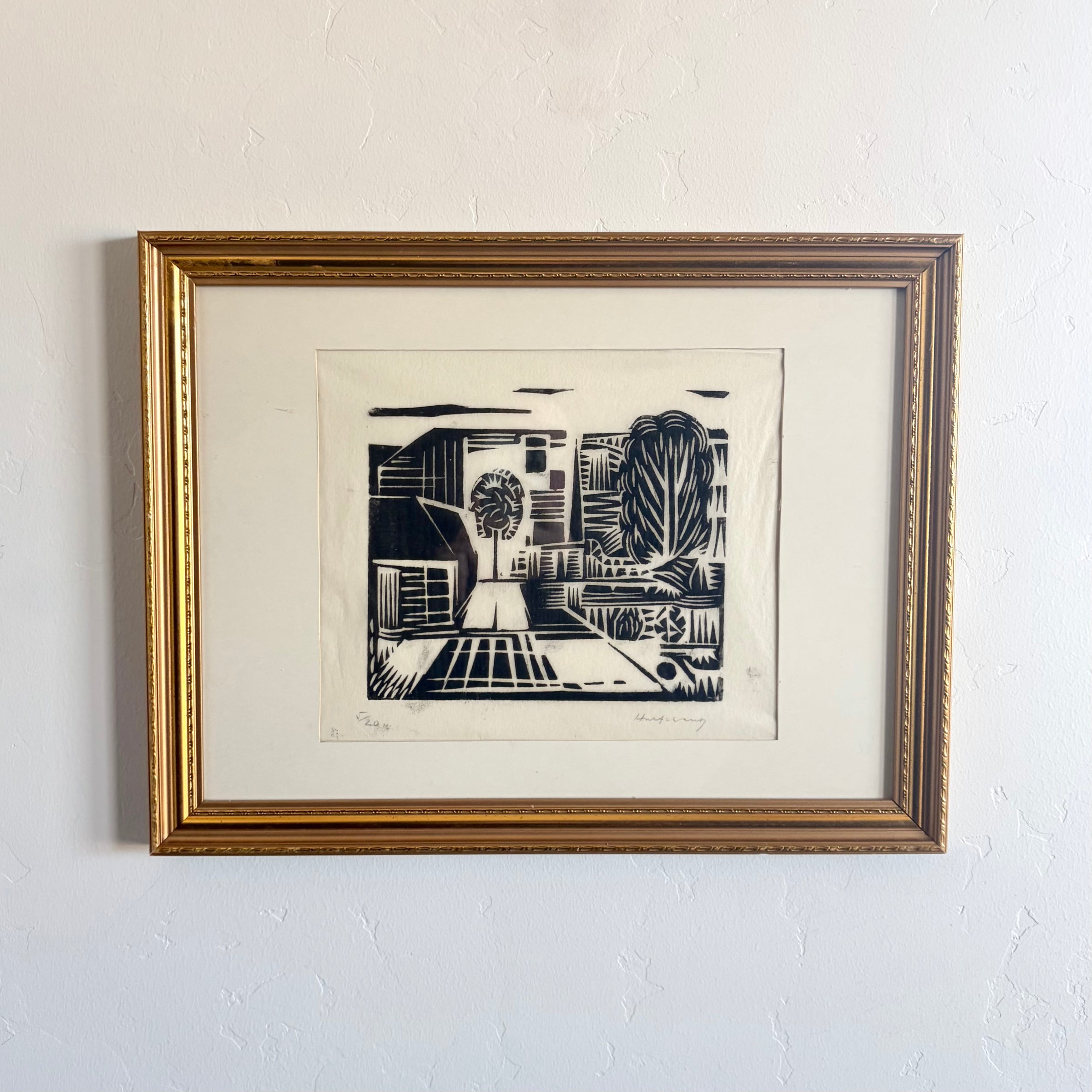 - Linocut with original frame