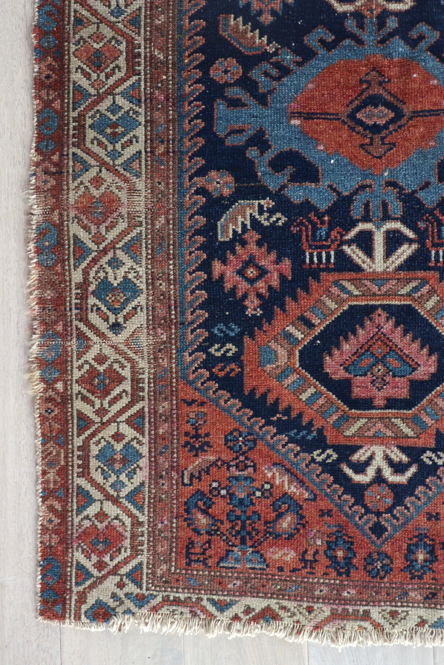 - Due to the handmade and preloved nature of these rugs, there will be imperfections and flaws that are not considered defects. We photograph our rugs indoors with solely natural light to try and show the colors as accurately as possible. All rugs are professionally cleaned.